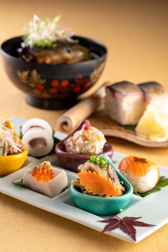 また、季節によって変わる主菜は鯖寿司、湯葉丼、天丼からお好きなひと品をお選びいただけます。