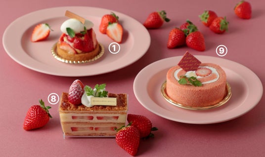 ケーキ(生菓子)は、柚子入りのいちごジュレに濃厚な味わいのカスタードとレモンバーベナが香るクリームをトッピングした「いちごのタルト」をはじめ、発酵バターを使用したサクサク食感のパイにアールグレイとオレンジの2種のカスタードをサンドした「いちごのミルフィーユ」など、全6種を販売します。