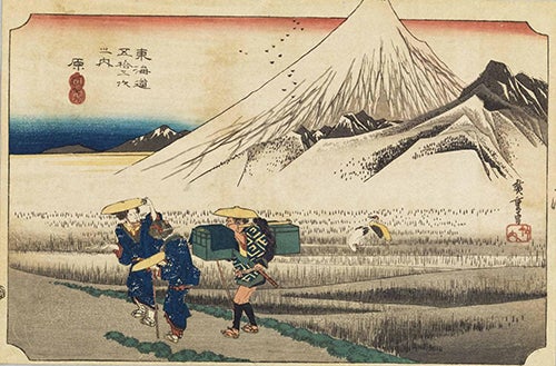 <歌川広重 東海道五十三次 原 朝之富士 江戸時代 天保4~5年(1833~34)岡田美術館蔵>