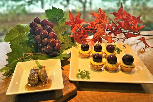 内容:通常の約40メニューのほか、牛ステーキの祇園坊柿のピューレ入りオニオンソースかけ、ピオーネタルト