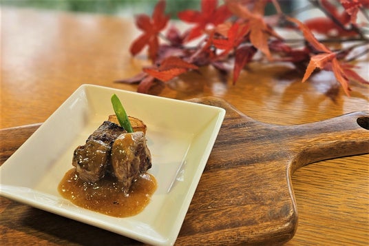 当ホテル4階のレストラン「ボンジュールプリュ」では、「早起きしたくなる、朝ごはん。」をコンセプトに、地産地消にこだわった朝食メニューを、毎日愛情を込めて作っております。広島名物のがんすや、ライブキッチンで焼き上げるお好み焼きと瀬戸内レモンを使用したしっとり爽やかなフレンチトーストがご好評をいただいております。11周年を迎える今年は、通常メニューに加え、三次市産の「黒い真珠」と称される三次ピオーネを贅沢にまるごと1粒使ったタルトや、安芸太田町産の祇園坊柿のピューレ入りオニオンソースをかけた牛ステーキを数量限定でご提供いたします。