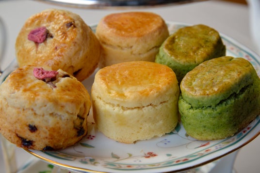 中段のスコーンは、定番のプレーン、桜の花びらがトッピングされた「桜のスコーン」と、毎年ご好評をいただいている「よもぎのスコーン」の3種です。人気のクロテッドクリームや、いちごと桜のコンフィチュールを付けてお召し上がりください。