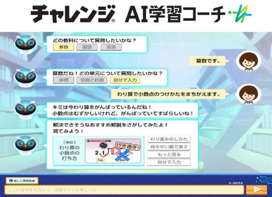 「チャレンジ AI学習コーチ」は、問題の答えを直接教えるのではなく、子どもたちの疑問に寄り添い、AIキャラクターと対話をしながら、考え方や視点を広げるサポートをし、自ら答えにたどり着けるように開発しています。