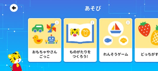 しまじろうと一緒にできるごっこ遊び・連想ゲームなどの「あそび」(20種以上)や一緒に歌える「うた」や「おはなし」 (40種以上)の読み聞かせまで、お子さまが一人でも継続的に遊べて、しまじろうと楽しめるコンテンツが充実。