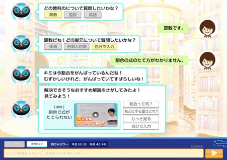 子どもたちにとって、何がわからないのかを言語化するのは実はとても難しく、「わからないことがわからない」「どう質問したらいいか、わからない」というケースも多々あります。これまでの指導ノウハウを活かし、わからないことの原因を予測し、単語レベルのつぶやきでも、AIとの会話によって、わからないことを掘り下げていき、適切な解説にたどり着くサポートをします。
