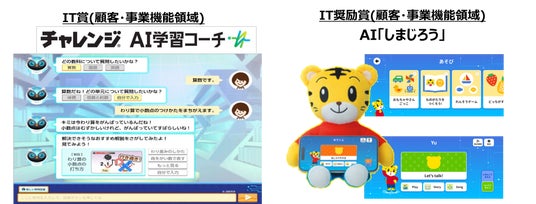 IT賞は、“ITを高度に活用したビジネス革新”で成果をあげた企業等に授与するものです。「IT賞(顧客・事業機能領域)」を受賞した「チャレンジAI学習コーチ」は、小学4年~中学3年生の「進研ゼミ」会員を対象に、学習内容や学習方法について、いつでも、わかるまで質問できるオンラインサービスで、2024年3月から提供しています。「進研ゼミ」の55年の指導により培ってきた学習データの分析や蓄積してきた指導コンテンツに、生成AIを含む最新のAI技術を組み合わせて実現しました。生成AIを含めた最新のAI技術の教育分野で利用の取り組みとして、他社にも参考になるサービスとして評価されました。また、同時に「IT奨励賞(顧客・事業機能領域)」を受賞したAI「しまじろう」は、生成AIを搭載しパーソナライズ機能を備えることで、様々な遊びや英会話などを通じて、子ども一人ひとりの「言葉の豊かさ」を育める点が評価されました。