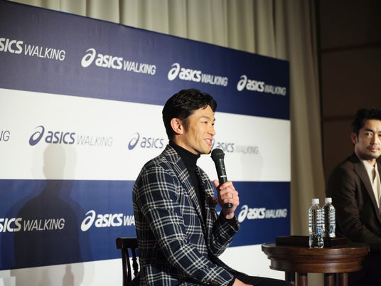 続いて、大谷亮平さんと廣瀬俊朗さんのトークショーに移りました。ともに大阪府出身でドラマやラグビー番組などで多数共演されるとともに、長年にわたるアシックス愛好者という共通点の多いおふたりの息のあったトークで会場は盛り上がりました。