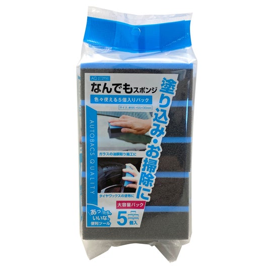 ■「AQ. なんでもスポンジ」は、ガラス油膜取りやコンパウンドなど、塗り込み作業の用途に合わせて使い分けできる5個入り