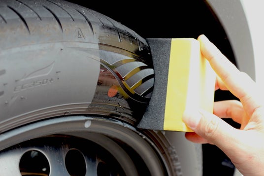 タイヤ側面の形状に合わせたアーチ状になっており、やわらかいスポンジ素材を採用しているため、タイヤワックスをムラなく塗り込むことができます。
