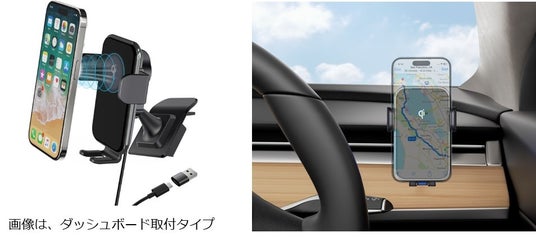 ワイヤレス充電スマホホルダー(自動開閉タイプ)アームが自動で開閉してスマホをホールドし、自動でワイヤレス充電を開始。最大15Wの急速充電(iPhoneは最大7.5W)。Qi規格準拠。両面テープや工具なしで取り付けできます。