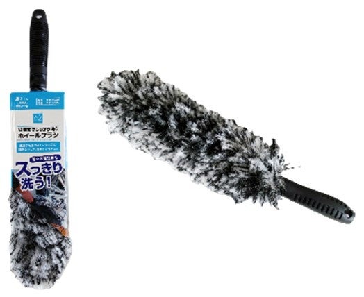 一気に広範囲の汚れをかき出せる太くて毛量の多いブラシは、スポークの間隔が広いホイールの清掃に適しています。ブラシ部の芯棒を曲げることができるため、スポークの裏側までしっかり洗うことができます。また、清掃時の水のはね返りが少ない素材を使用し、快適な清掃が可能です。