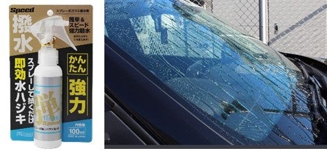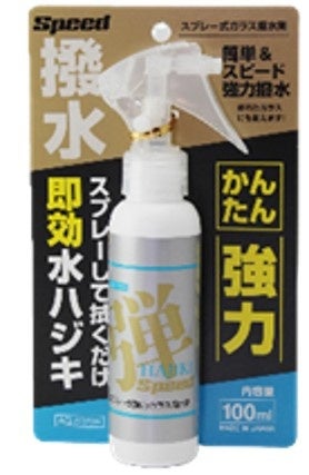 スプレータイプの窓ガラス撥水剤で、乾燥させる必要がなく、スプレーしてすぐにクロスで拭き上げるだけで、簡単かつスピーディーに撥水コーティングが完了します。濡れたガラスにも使用可能なため、雨天時でも施工可能です。