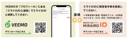 「VEEMO Welfare」は、駐車場探しアプリ「VEEMO」とデジタル障害者手帳「ミライロID」を連携させた新しいサービスです。デジタル障害者手帳をお持ちの方のみが「VEEMO」アプリから障害者等用駐車スぺ―スに設置されたスタンドを操作可能で、障害者等用駐車スペースの不適切利用を防ぎます。また、アプリで6カ月前から駐車場の予約が可能で、旅行や移動を計画的にサポートします。