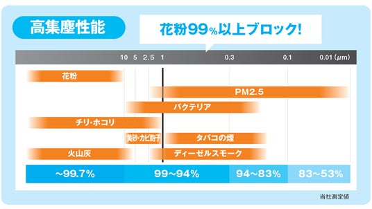 ■ 抗菌・抗ウイルス・抗アレル物質対応で、花粉やダニなどにも有効