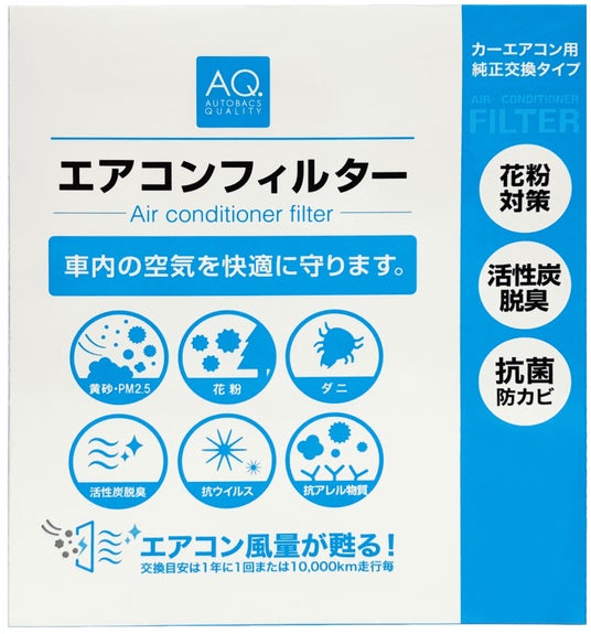 株式会社オートバックスセブン(代表取締役 社長:堀井勇吾)は、プライベートブランド「AQ.」(オートバックス クオリティ)シリーズのラインアップに、シリーズ初となる車用エアコンフィルターを追加し、全国のオートバックスグループ店舗、およびオートバックスドットコムにて2025年6月より販売を開始いたします。