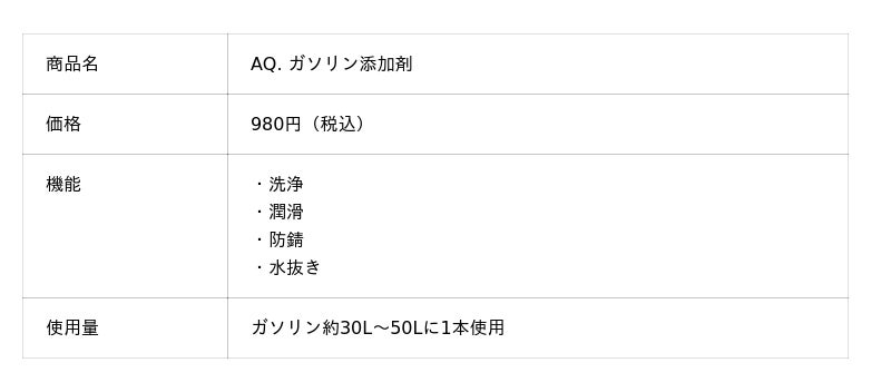 ■ AQ. シリーズ初となるガソリン添加剤を発売
