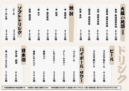 ●ビールは吹田市、地酒は高槻市、交野市、池田市と”大阪もん”にこだわっています。