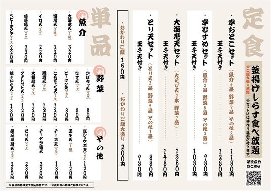 「天丼」「天茶づけ」等楽しみ方は何通りも。