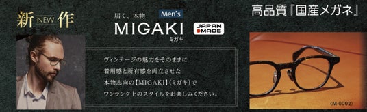 眼鏡専門店として品質の高い機能性を融合させながら、「真に納得できる高品質の眼鏡」の開発に挑み、たどり着いたのが、【MIGAKI】。世界でもトップクラスの福井県鯖江の職人が一つ一つ丁寧に手作業で行われる「磨き」の工程で生み出された風合いと光沢感が商品名の由来です。ヴィンテージの魅力そのままに着用感と所有感を両立させた本物志向の【MIGAKI】でワンランク上のスタイルをお楽しみください。
