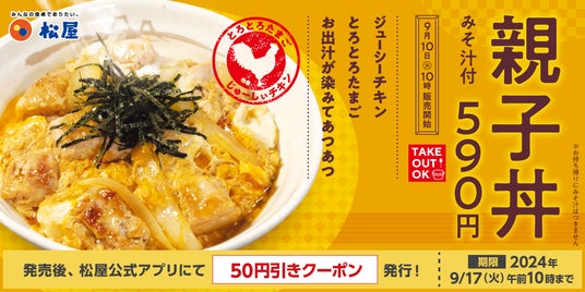 このたび松屋フーズ(本社:東京都武蔵野市、代表取締役社長:瓦葺一利)では、牛めし・カレー・定食・その他丼の「松屋」におきまして、2024年9月10日(火)10時より「親子丼」を販売いたします。