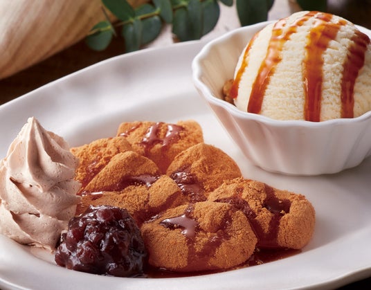 あったかわらび餅とバニラアイスの黒蜜がけ