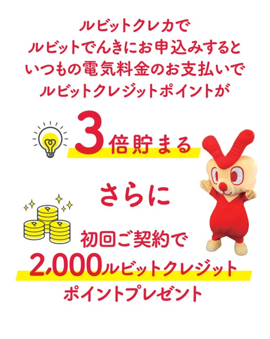 ルビットでんきをご利用いただくと200円(税込)ごとに3ルビットクレジットポイント(※2)が貯まります。