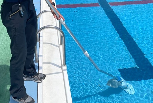 これまでプールに浮遊するゴミや水中に堆積した汚れは、「アミ」で、すくったり「清掃ロボット」を使うなどして除去をしてきました。