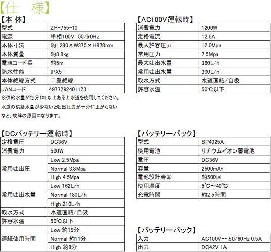 ”ZH-755-10”はコードレスなので、気軽にどこでも使用できます。またバッテリー洗浄機の中でも