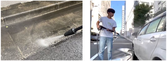 ベランダ洗浄、網戸洗浄、エアコンなどのフィルター洗浄、塗装がはがれてしまう恐れのあるものを洗浄する場合はLOWモード(2.5MPa)、シャッターや外壁などのこびりついた汚れを落としたいときはHighモード(4.5MPa)を使用する等、使用環境に合わせた洗浄が可能です。