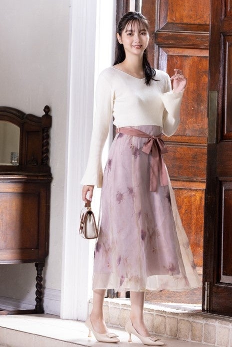 コーデを華やかにしてくれる透け感のあるオーガンジー素材にプリントされた花柄がとても上品です。