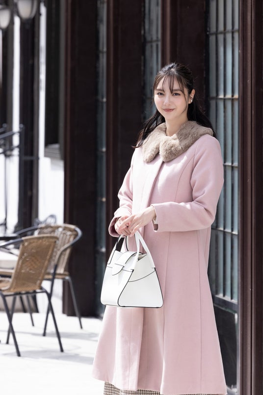 取り外し可能なファー衿付きで、その日の気分で着こなしができます。